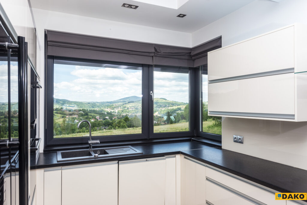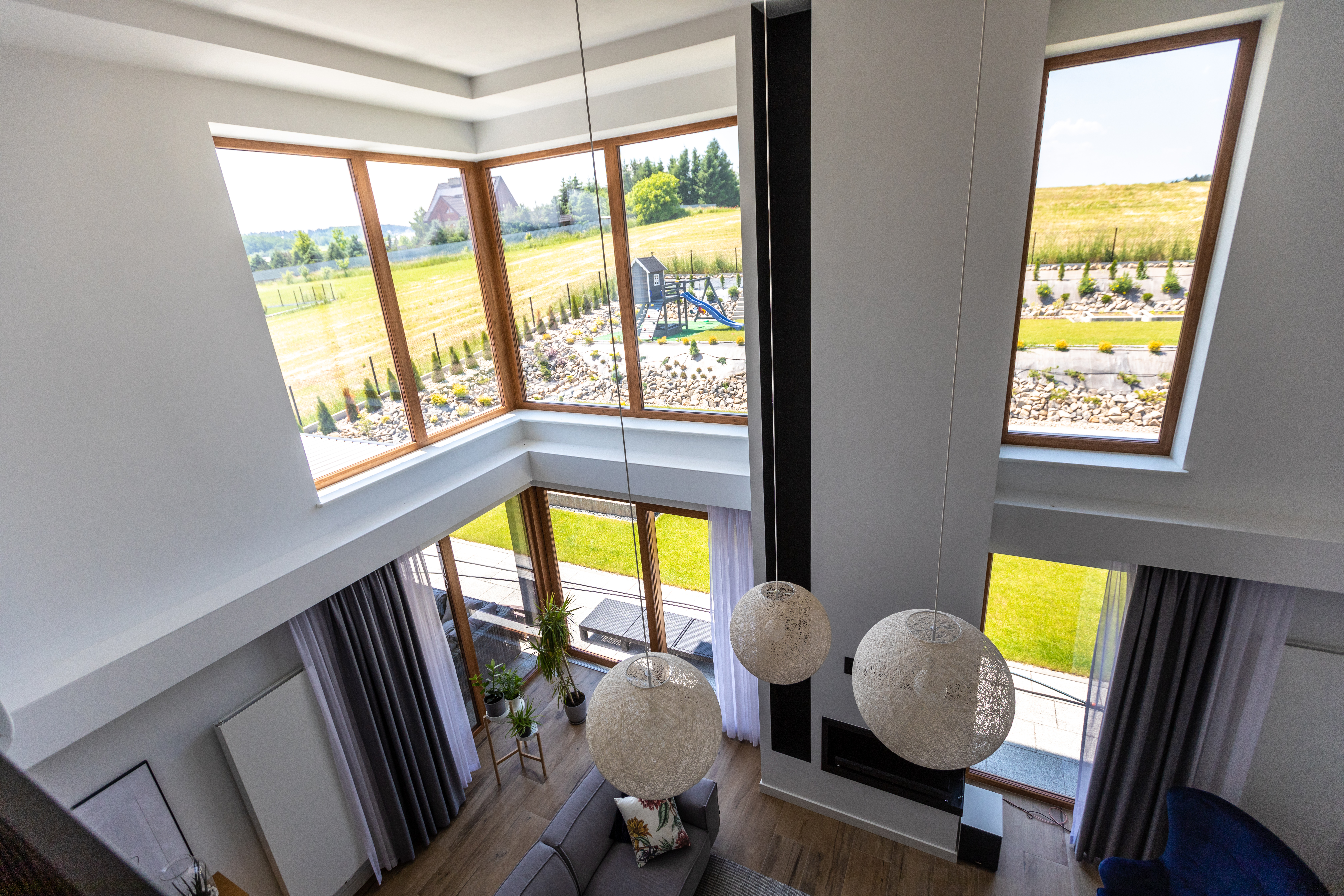 PVC-fönster med smala profiler och hög energieffektivitet â ger ett stilrent intryck, slĂ€pper in rikligt med ljus och ramar in utsikten pĂ„ ett elegant sĂ€tt.
